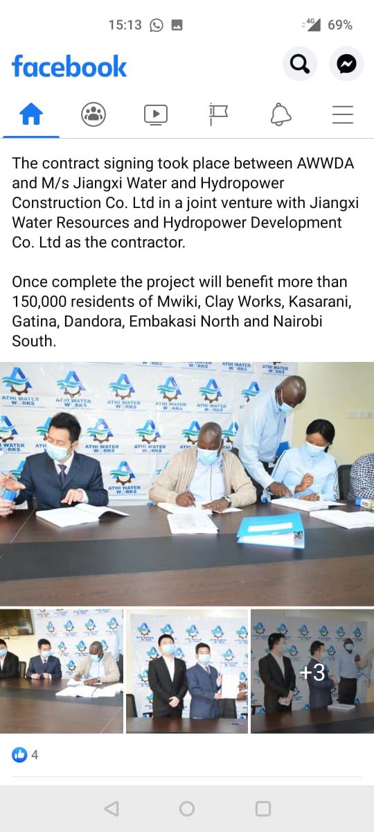 2021年3月19日當地時間上午八時,肯尼亞分公司與肯尼亞阿西水務開發局在阿西水務大廈簽訂了Mwiki污水管道項目施工合同。肯尼亞公司總工程師劉瑞林代表分公司與阿西水務局首席執行官麥克共同出席簽約儀式并簽定施工合同。