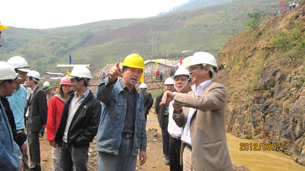 參加截流儀式的有越南工商部副部長、世界銀行官員、越南銀行官員、業(yè)主MECO公司董事長阮一平、安發(fā)水電投資股份公司董事長阮平陽和總經(jīng)理陳重朵等。我公司駐越南分公司經(jīng)理鄒春明和項(xiàng)目經(jīng)理夏愛民分別向參加儀式的嘉賓詳細(xì)介紹了工程施工情況,各方嘉賓亦對工程施工情況表示贊賞。越南工商部副部長說,“南化二級電站是他管轄的十二個(gè)省市里進(jìn)度最快、質(zhì)量最好的項(xiàng)目”。