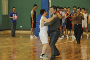 座談會(huì)結(jié)束后,大家乘車前往恒大體育館,活動(dòng)的第一項(xiàng)內(nèi)容是公司領(lǐng)導(dǎo)和青年員工共同完成的團(tuán)隊(duì)拓展游戲——“齊腳并進(jìn)”和“心心相印”兩項(xiàng)接力比賽。比賽過程中,公司領(lǐng)導(dǎo)和青年員工們熱情高漲,目標(biāo)明確,心往一處想,勁往一處使,充分發(fā)揮團(tuán)隊(duì)協(xié)作精神,爭分奪秒完成各項(xiàng)任務(wù),布滿汗水的笑臉在燈光下熠熠生輝,加油鼓勁和歡呼祝賀聲響成一片。拓展游戲項(xiàng)目結(jié)束,大家還進(jìn)行了籃球友誼賽和羽毛球比賽。
