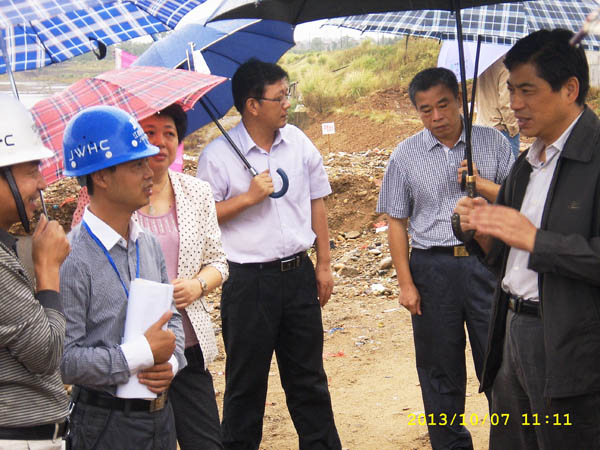 江西省水利廳廳長孫曉山冒雨來到公司承建的鉛山縣城西堤工地視察工作