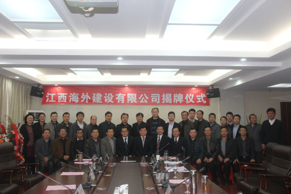 隨后,伴隨著歡樂喜慶的歌曲,總公司董事長(zhǎng)王元旦,總經(jīng)理徐洪良與江西海外建設(shè)有限公司執(zhí)行董事張周平,總經(jīng)理黃鄭民為新公司揭牌并合影留念。