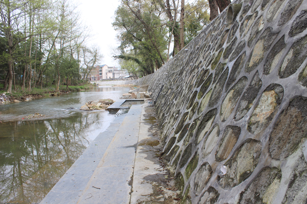 玉山縣樟村鎮防洪工程的施工主要內容有:堤身土方填筑;左、右岸堤身防護(埋石砼防洪墻、干砌石護坡、漿砌石護坡、草皮護坡)、河道疏浚、涵閘及交通橋拆除重建等四座建筑物改建工程。