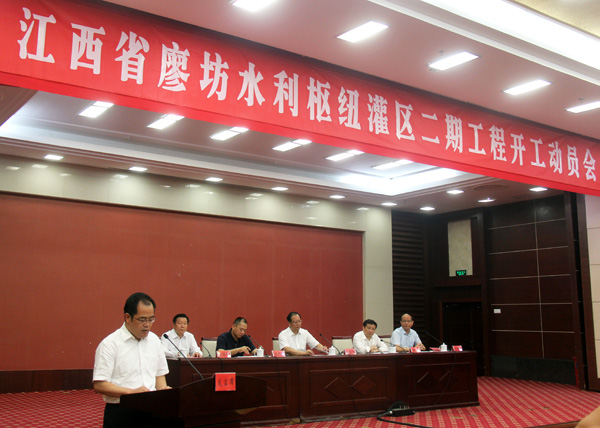 毛偉明副省長(zhǎng)代表省委省政府對(duì)項(xiàng)目的開(kāi)工表示熱烈祝賀,他指出廖坊水利樞紐灌區(qū)二期工程是國(guó)家“十三五”期間172項(xiàng)重大水利工程之一,并列為國(guó)家今年二十個(gè)新開(kāi)工項(xiàng)目,系江西省唯一今年新開(kāi)工的國(guó)家重大水利工程,項(xiàng)目工期30個(gè)月,工程總投資為12.89億元。他要求撫州市要緊盯項(xiàng)目建設(shè)既定目標(biāo)要求,加強(qiáng)領(lǐng)導(dǎo),周密部署,科學(xué)調(diào)度,扎實(shí)推進(jìn)工程建設(shè);要不斷拓寬籌資渠道,積極爭(zhēng)取國(guó)家專項(xiàng)建設(shè)基金,著力推動(dòng)PPP項(xiàng)目運(yùn)作,為工程建設(shè)提供資金保障。省直有關(guān)部門要密切配合、優(yōu)化服務(wù),及時(shí)調(diào)度解決項(xiàng)目建設(shè)中遇到的困難和問(wèn)題。市、縣兩級(jí)要進(jìn)一步強(qiáng)化大局意識(shí),做好項(xiàng)目建設(shè)各項(xiàng)服務(wù)工作,為工程建設(shè)營(yíng)造良好的施工環(huán)境。項(xiàng)目各施工單位要強(qiáng)化項(xiàng)目管理,保證質(zhì)量安全,集中優(yōu)勢(shì)力量,科學(xué)安排工期,加快建設(shè)進(jìn)度,努力把項(xiàng)目建設(shè)成為功在當(dāng)代、利在千秋的精品工程、民心工程、廉潔工程。