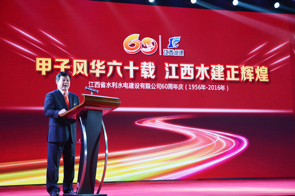 六十年風雨征程光陰荏苒;一甲子滄桑巨變歲月如歌。今天,我們相聚在這里,共同慶祝江西水建成立60周年,一起回顧公司60年的艱苦創業,齊心展望公司的美好前景。借此機會,我謹代表公司海內外全體員工,向蒞臨大會的各級領導、各位來賓表示最熱烈的歡迎和衷心的感謝!向長期以來關心和支持公司成長和發展的新老領導、有關單位和部門、合作伙伴以及社會各界朋友表示最誠摯的謝意!向曾經為公司發展做出貢獻的歷任老領導、老同志、以及在他們身后默默奉獻的家屬,致以最崇高的敬意!向此時此刻依然奮戰在中華大地和異國他鄉的廣大員工,致以最親切的慰問和最美好的祝愿!