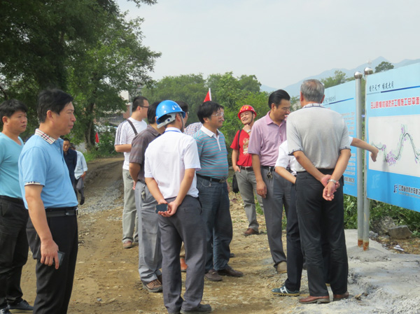 為進一步落實8月8日全省水利建設(shè)推進會精神,2014年9月21日上午,以水利廳副廳長廖瑞釗為組長的督查組來到我公司承建的上饒市玉山縣樟村鎮(zhèn)防洪工程現(xiàn)場檢查指導(dǎo)工作。督查組一行深入工地全線施工現(xiàn)場,每到一處都詳細詢問各參建單位情況,了解工程的投資規(guī)模、設(shè)計方案及進度、質(zhì)量控制情況。督察組對樟村鎮(zhèn)防洪工程施工質(zhì)量尤其是工程外觀表示非常滿意。在看了工地整齊規(guī)范的五圖一牌及公司形象宣傳欄后,廖瑞釗副廳長對我公司的標準化施工管理給予了高度評價,還不時拍照記錄,并要求玉山縣水利局在全縣其他水利建設(shè)工地參照學(xué)習(xí)并加以推廣。在檢查完工地現(xiàn)場后,督察組在樟村鎮(zhèn)政府就防洪工程設(shè)計、施工、及鄉(xiāng)鎮(zhèn)規(guī)劃召開了座談會。