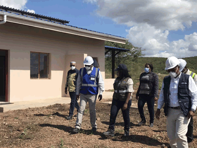 Cecilia女士先后參觀了移民房、副壩、溢洪道和水庫管理站新辦公大樓,并現(xiàn)場觀摩了弧形閘門的啟閉演示。她邊看邊問,詳細了解各分部工程的建設(shè)情況和項目總體進度,認真聽取日常施行的各項防疫措施;在得知項目即將竣工的消息后,對承包商的表現(xiàn)表示高度贊賞。她動情地說道,盡管現(xiàn)在新冠肺炎肆虐全球,但是優(yōu)秀的中國承包商在做好各項防控措施的基礎(chǔ)上,仍然堅守戰(zhàn)線、迎難而上,充分體現(xiàn)了履約精神和奉獻精神,值得尊敬!她表示,也許疫情將持續(xù)一段時間,但是只要承包商有困難,就要毫不猶豫地向政府表達,公共工程部永遠是承包商堅強的后盾。她強調(diào),業(yè)主國家水務(wù)局和承包商要更加精誠團結(jié),充分估計疫情可能造成的各類影響,謀劃在前、全盤統(tǒng)籌,以縝密的防控措施和有力的生產(chǎn)行動站好最后一班崗,如期實現(xiàn)項目移交和運營,為300萬首都人民帶去生命之水。