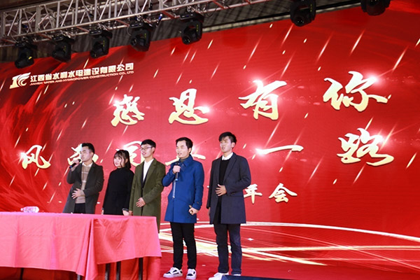 鮮紅的綢帶,迎來明媚的新春;火紅的笑臉,洋溢著節(jié)日的喜慶。隨后的文藝匯演在舞蹈《鼓舞飛揚》中拉開帷幕,舞蹈,歌曲聯(lián)唱,情景劇、詩朗誦、相聲、大合唱等文藝節(jié)目輪番上演,整場演出精彩絕倫,高潮迭起。年會中穿插了《2018年工程巡禮》、《國內(nèi)外員工拜年》視頻,豐富的表現(xiàn)形式反映了一年來公司取得的豐碩成果和公司員工在工作、生活中的點點滴滴,體現(xiàn)了江西水建人昂揚向上的精神面貌。
